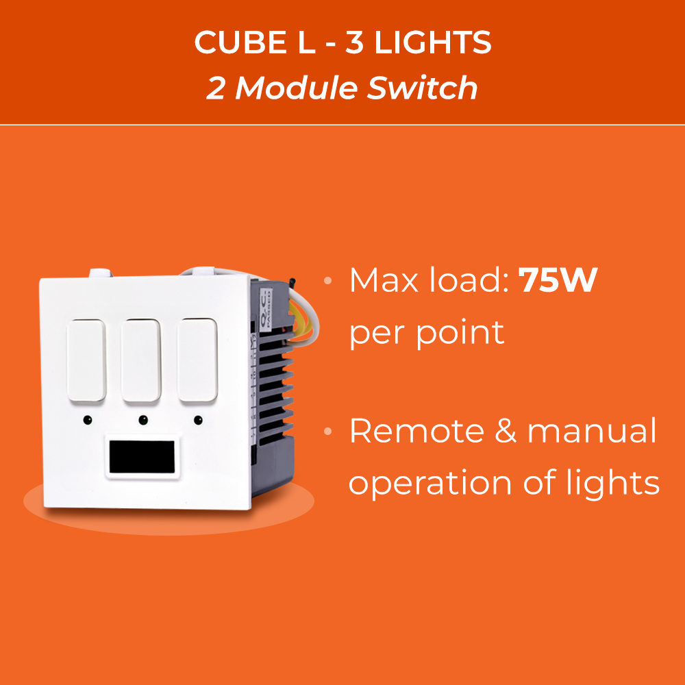 The Dott Systems Cube L is designed for 3 lights. With dual remote and manual operation and Compatibility with inverters and generators, it’s a reliable, energy-saving home automation solution backed by a one-year warranty.