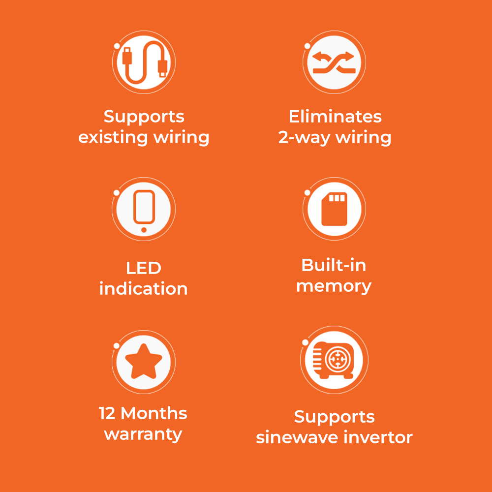 The Dott Systems Curo is designed for 1 light 1 fan. With dual remote and manual operation and Compatibility with inverters and generators, it’s a reliable, energy-saving home automation solution backed by a one-year warranty.